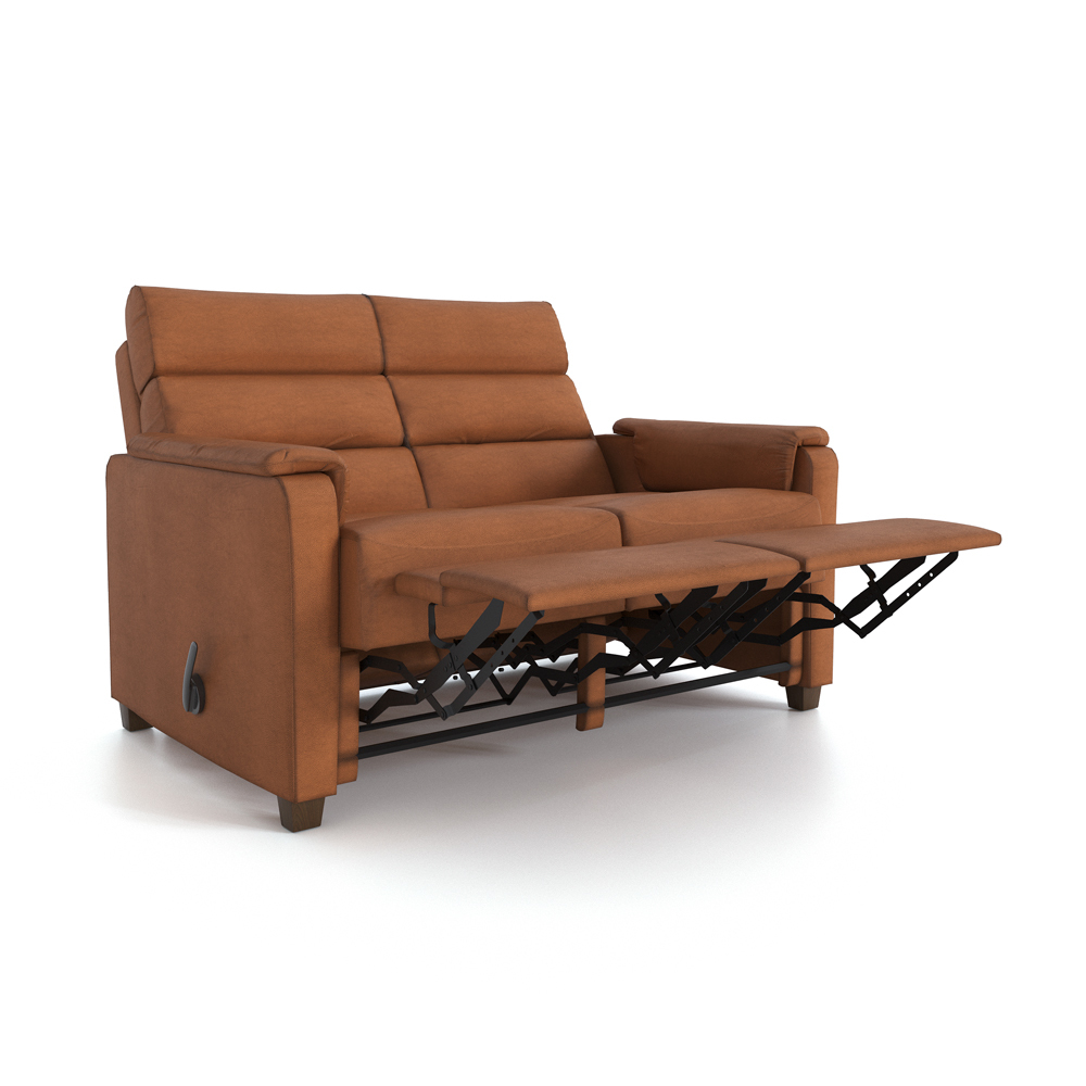 Кресло, двухместный диван, трехместный диван с двумя посадочными подушками, трехместный диван с тремя посадочными подушками. За исключением 3х-местного дивана с двумя подушками, секцию-реклайнер можно установить в любую комплектацию. Кресла, оснащенные реклайнером, установлены на дисковое основание, имеют функции качения и вращения. Для кресла с механическим реклайнером доступна опция блокировки качания GLIDER LOCK. Управление механическим реклайнером может располагаться с любой стороны подлокотника. Электроприводной механизм управляется сенсорной кнопкой TOUCH.