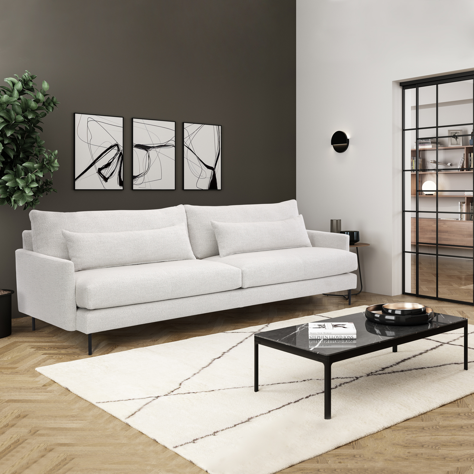 3-х местный диван (ширина 235 см), 3-х местный диван (ширина 195 см), кресло (105×105 см), пуф (70×110 см). Вариации модулей для индивидуальной сборки: подлокотник (8 см), основной модуль (ширина 220 см), основной модуль (ширина 180 см), кушетка (90×165 см) см, кушетка (150×105 см), угол (105×105 см). Коллекция не содержит механизмов раскладки спального места.