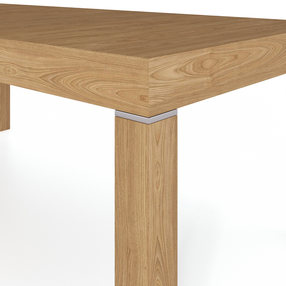 Простая форма обеденного стола производит сильное впечатление благодаря заметной роли каждой детали. Конструктивных элементов немного, поэтому стол не выглядит громоздким; ножки из массива дуба преувеличенного сечения 90х90 мм расставлены строго по углам прямоугольника. Соотношение несущих и несомых частей — ключевое средство выразительности ZOOM. Это распространённый приём скандинавского дизайна, который стал трендом и берёт своё начало в особенности финского менталитета, которую финны называют «си́су» и описывают как «способность проявлять непоколебимую решимость перед лицом враждебных обстоятельств». Правдивые, спокойные формы, брутализм, долговечность, симметрия и монохромность приносят в окружающее пространство ясность, помогают стабилизировать эмоциональный фон и почувствовать опору. Стол из коллекции ZOOM подойдет в интерьеры в стиле лофт, минимализм, индустриальные и скандинавские интерьеры. Столешница выполнена из МДФ с отделкой дубовым шпоном.