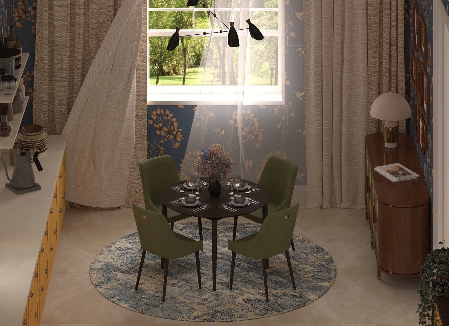 Интерьер наполнен всем тем, что несёт положительные эмоции. И цвет — это первое, что привносит в интерьер яркие эмоции радости, счастья, наполняет его энергией. Здесь оранжевый «стремится» к терракотовому, синий приглушен серым — возникает замечательный образ летней вечеринки. Добавление растений обеспечивает психологическую стабильность и комфорт, также стимулируя чувства различными способами позитивом, энергией, свежестью и энтузиазмом.