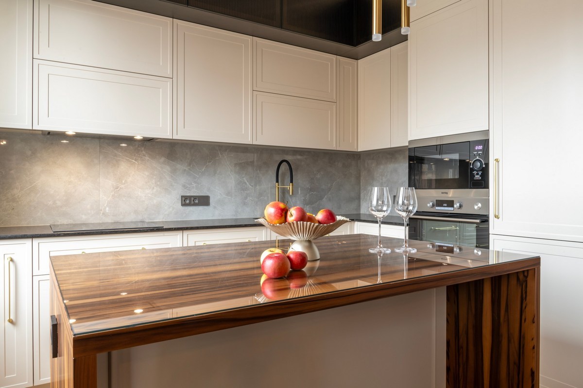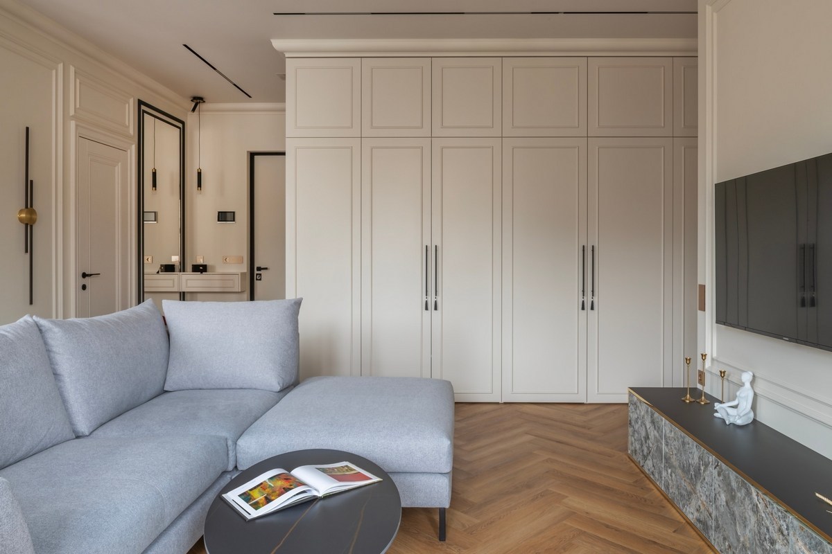 Интерьер квартиры в историческом центре Петербурга спроектирован с учетом всех пожеланий заказчиков, которые сейчас живут Таиланде и планируют первое время сдавать квартиру в аренду. В отделке комнат применили износостойкие отделочные материалы в светлых бежевых тонах с черными акцентами. Палитра повторяет цветовую гамму оформления общественных зон жилого комплекса.