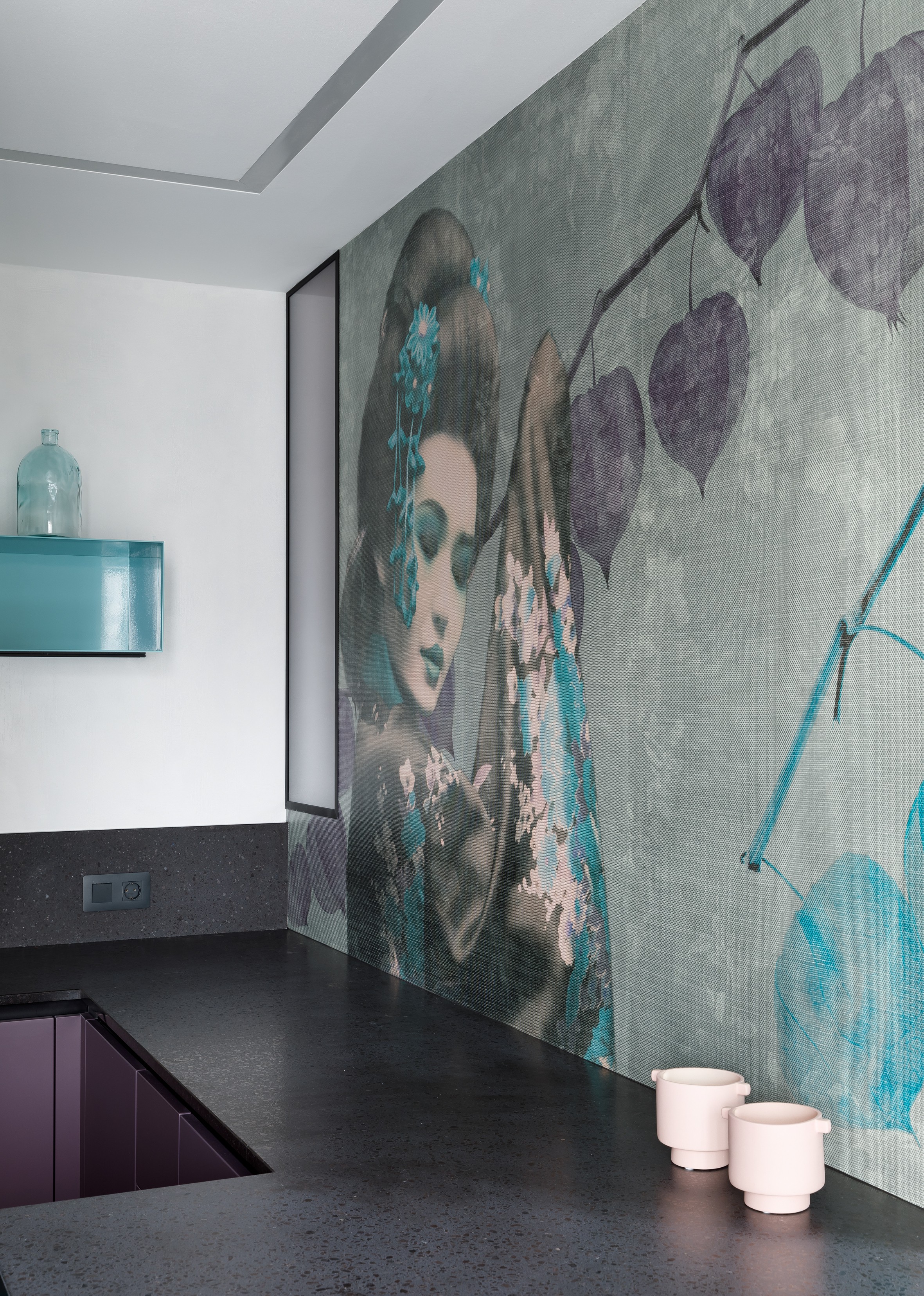 Планировка квартиры в новом жилом комплексе на окраине Санкт-Петербурга построена по принципу открытого зонирования общественного пространства (прихожей, гостиной, столовой и кухни). Прихожая соединена с гостиной широким портальным проемом. Мобильная перегородка (кассета) обеспечивает возможность временной изоляции зоны кухни от пространства гостиной. В основу образно-стилистической концепции интерьера положено соединение двух минималистических интерпретаций современного дизайна – скандинавского и японского (так называемое направление «Japanordic»). Превалирующий композиционный прием – чередование акцентных фактурных и гладких поверхностей стен в соответствии с логикой развития пространства и фокусировки центров визуального притяжения в основных функциональных группах (деревянные 3D-панели, гладкая декоративная штукатурка, зеркало в прихожей, стеклянные объемы гардеробных, панно на стене в кухне и др.). Динамичную направленность поддерживают линейные встроенные и трековые накладные системы светильников, расположенные в ортогональных направлениях на потолке и частично переходящие на стены. Диван от Hauska выполнен в велюровой отделке яркого рыжего цвета и является своего рода композиционной доминантой гостиной. Также мебелью Hauska комплектуется небольшая столовая, находящаяся в едином пространстве с диванной группой.